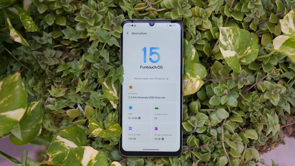 Vivo T4 Lite ஆனது Android 15 அடிப்படையிலான Funtouch OS 15 AI உடன் வருகிறது. இதில் சில Bloatware’s (Apps & Games) இருந்தாலும், அவற்றை நீக்க முடியும்[cite. 2 வருட software upgrades மற்றும் 3 வருட security patches வழங்கப்படும். இது 4GB அல்லது 8GB LPDDR4X RAM மற்றும் 128GB அல்லது 256GB UFS 2.2 storage அல்லது (6GB + 128GB) eMMC 5.1 storage விருப்பங்களில் கிடைக்கிறது. Extended RAM மூலம் 8GB வரை RAM-ஐ அதிகரிக்கலாம் மற்றும் 2TB வரை நினைவகத்தை microSD மூலம் விரிவாக்க முடியும்.